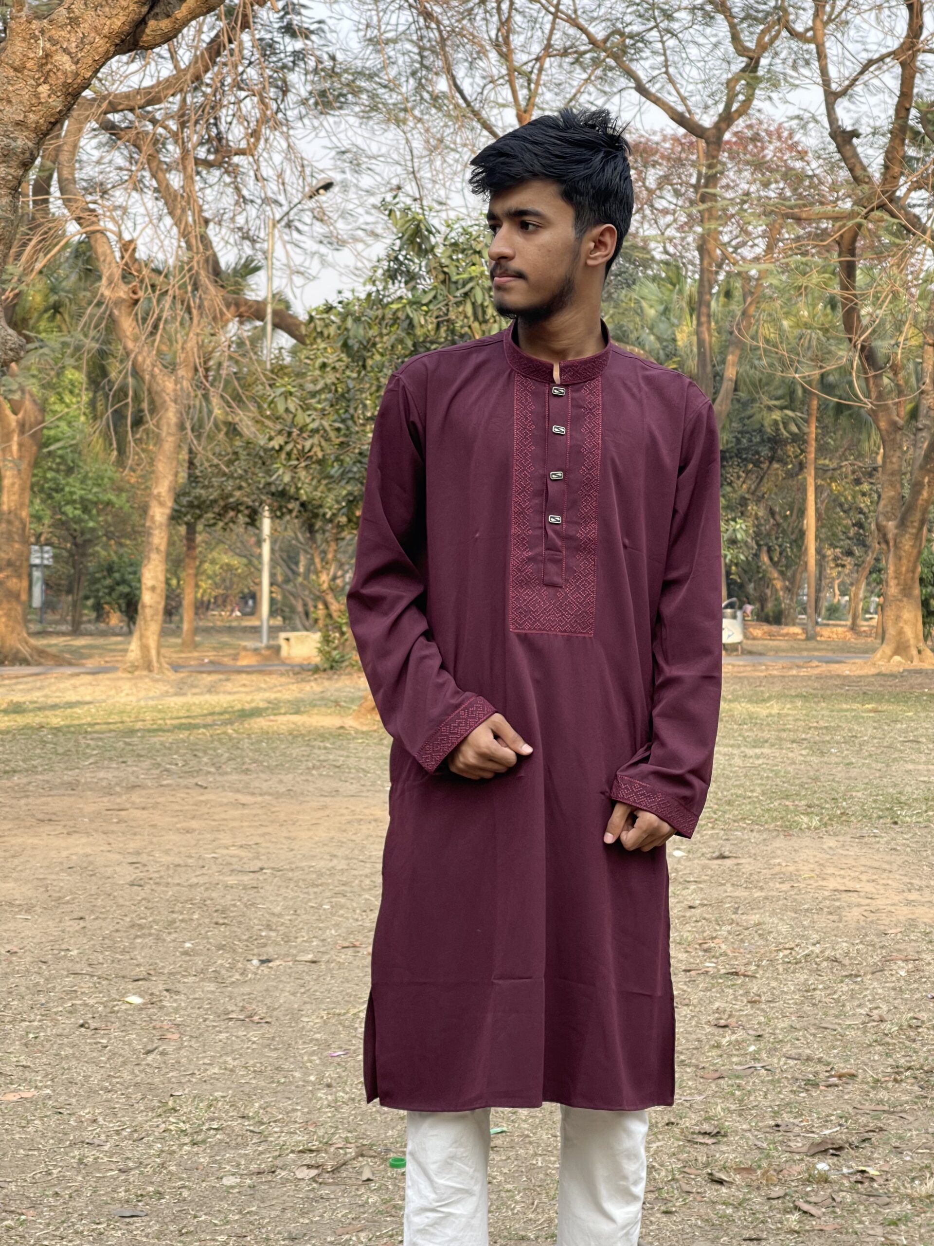 This Panjabi is a perfect choice for formal occasions, festivals (Eid, Diwali), evening wear, or as a sophisticated outfit for a wedding celebration. Its rich color pairs excellently with white or cream bottoms.