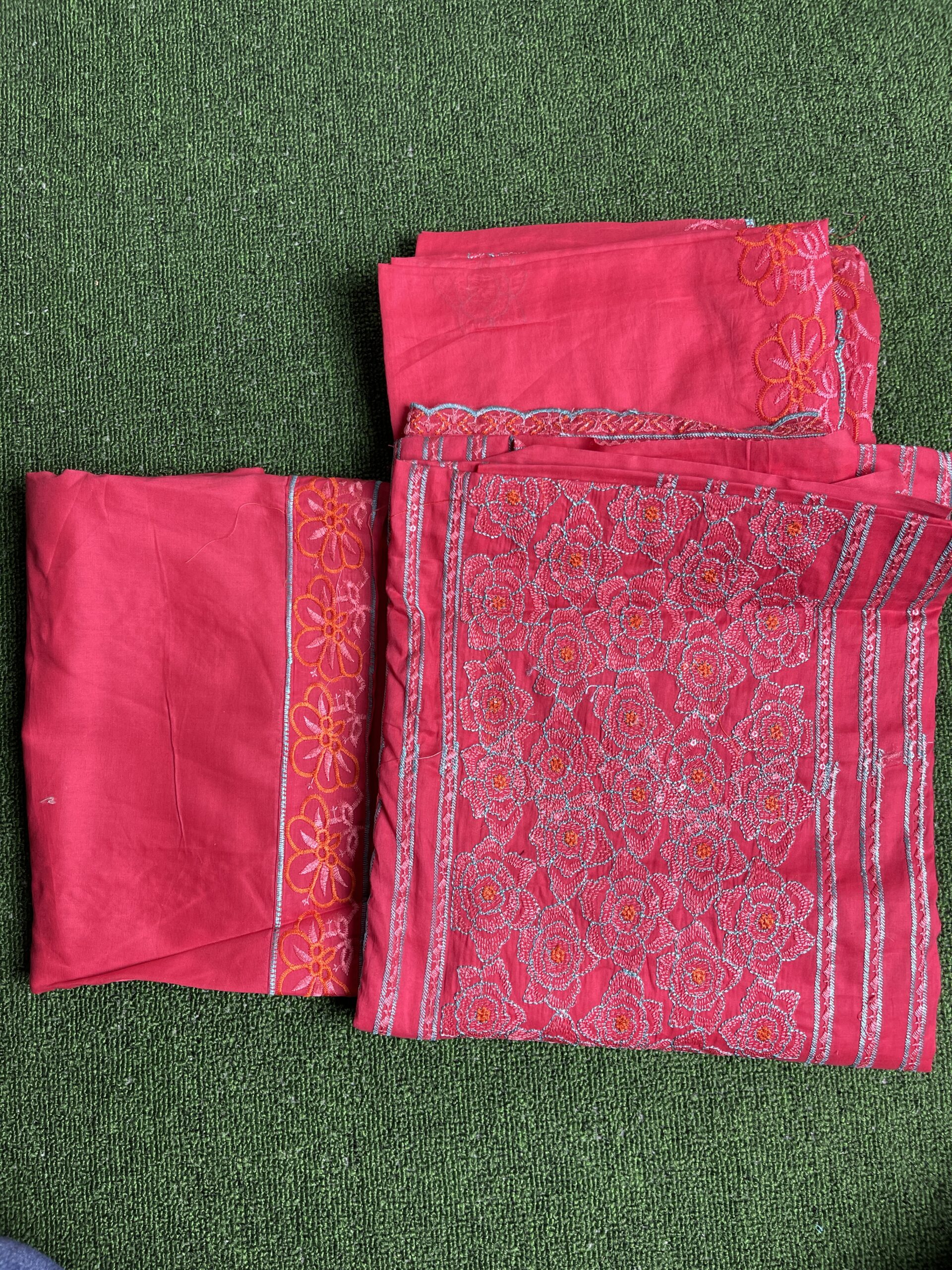 Use: To be stitched into comfortable bottoms, balancing the heaviness of the embroidered shirt and dupatta.
